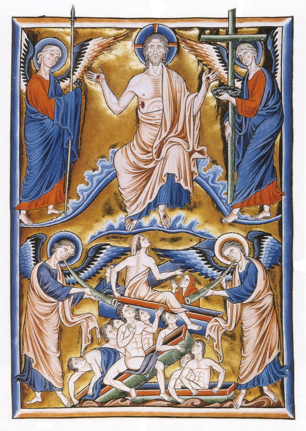 miniatura przedstawia powtórne przybycie Chrystusa. Syn Boży siedzący