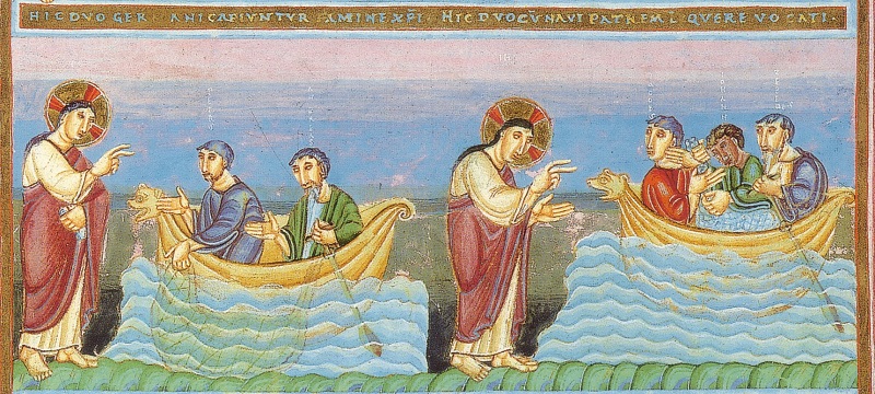 poświęcony powołaniu pierwszych uczniów. Nad ilustracją przebiega złota