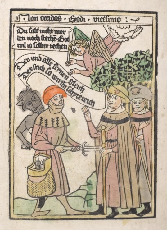 przedstawionych dziesięć przykazań. Jest to kolorowany drzeworyt i