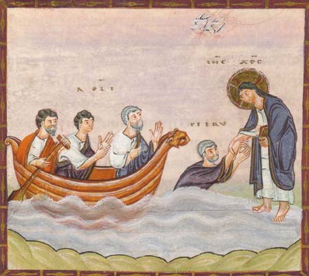 zamknięcia w ilustracji opowiadania o uratowaniu tonącego Piotra (Mt