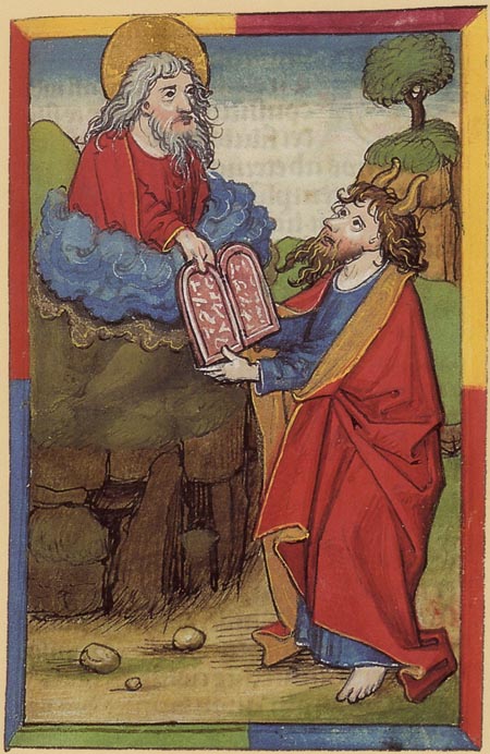 des Hieronymus (4. Jh.). Als Mose vom Berg Sinai mit den zwei Tafeln in