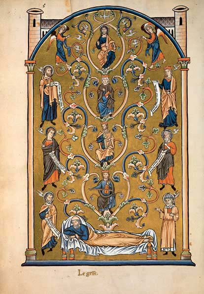 Ingeborg-Psalter. Von der Liege Isais (Jesse) erhebt sich der Baum,