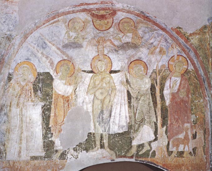 podczas chrztu Jezusa ukazuje fresk w Lambach