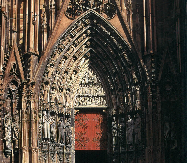 Notre-Dame zu Strasbourg (rosa Sandstein) sind auf der linken Seite die