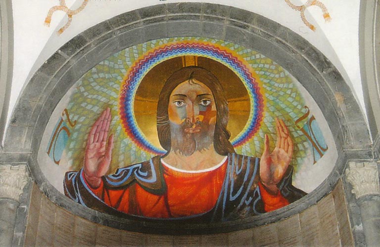 absydzie bazyliki Notre Dame de la Salette, przedstawiającą Chrystusa