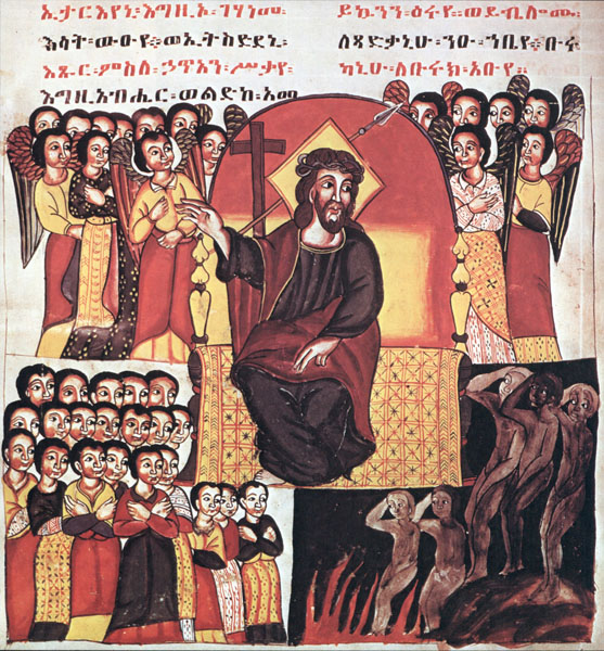 rechten die Verdammten im Feuer. Der Herr segnet die linke Gruppe von